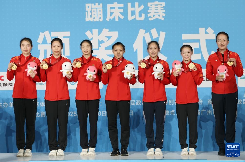 10月11日,冠军山西队队员出席颁奖仪式。当日,第十五届全运会蹦床女子决赛在广州举行。新华社记者卢汉鑫摄 10月11日,冠军山西队队员在颁奖仪式上。当日,第十五届全运会蹦床女子决赛在广州举行。新华社记者卢汉鑫摄 10月11日,浙江队亚军队员在颁奖仪式上。当日,第十五届全运会蹦床女子决赛在广州举行。新华社记者卢汉鑫摄 10月11日,季军江苏队队员在颁奖仪式上。当日,第十五届全运会蹦床女子决赛在广州举行。新华社记者斯鲁汉鑫摄 10月11日,山西队队员胡毅成在比赛中。最终,山西我队获得了冠军。当日,第十五届全运会蹦床女子决赛在广州举行。新华社记者卢汉鑫摄 10月11日,山西队队员张宇在比赛中。最终,山西队夺得冠军。当日,第十五届全运会蹦床女子决赛在广州举行。新华社记者卢汉鑫摄 10月11日,山西队队员姚金奇在比赛中。最终,山西队夺得冠军。当日,第十五届全运会蹦床女子决赛在广州举行。新华社记者卢汉鑫摄 10月11日,浙江队队员范新一在比赛中。最终,浙江队获得亚军。当日,第十五届全运会蹦床女子决赛在广州举行。新华社记者卢汉鑫 摄 10月11日,浙江队员石欣怡在比赛中。最终,浙江队获得亚军。当日,第十五届全运会蹦床女子决赛在广州举行。新华社记者卢汉鑫摄 10月11日,浙江队队员曹云柱在比赛中。最终,浙江队获得亚军。当日,第十五届全运会蹦床女子决赛在广州举行。新华社记者卢汉鑫摄 10月11日,江苏队队员钟阳在比赛中。最终,江苏队获得第三名。当日,第十五届全运会蹦床女子决赛在广州举行。新华社记者卢汉鑫摄 10月11日,江苏队队员邱正在比赛中。最终,江苏队获得第三名。当日,第十五届全运会蹦床女子决赛在广州举行侯。新华社记者 卢汉鑫 摄